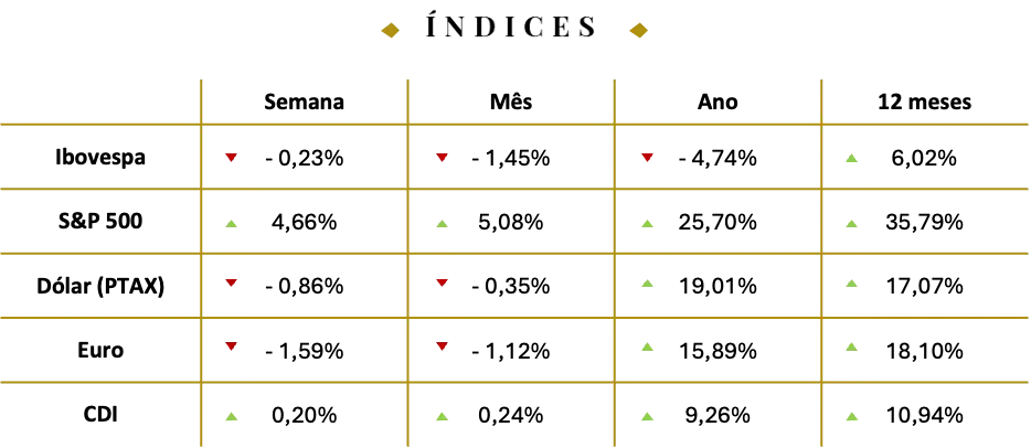Donald Trump é eleito o 47º presidente dos Estados Unidos. Em disputa acirrada e incerta até o momento da apuração, Donald Trump saiu vencedor do pleito e se torna presidente dos Estados Unidos. Olhando para o campo econômico, as políticas propostas pelos dois candidatos contêm a possibilidade de piorar a situação fiscal do país, o que tem potencial para impactar os mercados. Enquanto Kamala se concentrava na expansão de programas sociais, indicando uma política fiscal expansionista, Trump focou em cortes de impostos, imposição de barreiras tarifárias e políticas de imigração. A vitória de Donald Trump impulsionou expectativas de novos estímulos econômicos nos EUA e, em um primeiro momento, os mercados reagiram positivamente, com altas nos índices S&P 500 e NASDAQ, e ainda mais expressivas em índices de empresas de menor capitalização. No dia do resultado, o dólar se fortaleceu e os rendimentos dos Treasuries subiram.