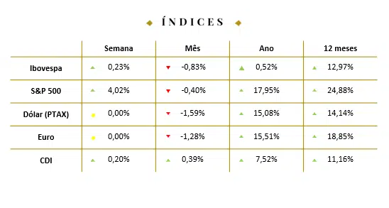Vendas no varejo crescem 0,6% em julho. Segundo dados da Pesquisa Mensal de Comércio (PMC), divulgada nesta quinta-feira (12) pelo Instituto Brasileiro de Geografia e Estatística (IBGE), as vendas no comércio varejista no Brasil subiram 0,6% em julho demonstrando certa recuperação após caírem 0,9% no mês anterior. No ano, o varejo acumula alta de 5,1% e 3,7% nos últimos 12 meses. Em comparação com o mesmo mês de 2023, o setor cresceu 4,4%, a décima quarta alta consecutiva. O resultado de julho foi impulsionado pelo avanço de 1,7% nas vendas do grupo Hiper, supermercados, produtos alimentícios, bebidas e fumo e de 2,1% do grupo Outros artigos de uso pessoal e doméstico. Também houve crescimento das vendas dos setores Equipamentos e material para escritório, informática e comunicação (2,2%), Tecidos, vestuário e calçados (1,8%) e Móveis e eletrodomésticos (1,4%). No que se refere ao comercio varejista ampliado, que inclui, além do varejo, as atividades de veículos, motos, partes e peças, material de construção e atacado de produtos alimentícios, bebidas e fumo, o volume de vendas apresentou variação de 0,1% na leitura mensal, próximo da estabilidade. No acumulado do ano, o indicador registra alta de 4,7%, de 3,8% nos últimos 12 meses e de 7,2% em relação a julho de 2023. Projeção para déficit primário de 2024 cai de R$ 73,5 bi para R$ 66,6 bi, aponta Prisma Fiscal. Conforme dados do relatório Prisma Fiscal, divulgado nesta sexta-feira (13), economistas consultados pelo Ministério da Fazenda melhoraram suas previsões para o resultado primário do governo neste ano com a expectativa de déficit caindo de R$ 73,500 bilhões para um saldo primário negativo de R$ 66,665 bilhões em 2024. Contudo, houve piorara nas estimativas para 2025, passando de um déficit de R$ 93,067 bilhões, ante R$ 91,689 bilhões divulgados no relatório de agosto. Em relação à dívida bruta do governo geral, as estimativas são que chegue a 77,91% do Produto Interno Bruto (PIB) ao final de 2024, acima de 77,72% projetados em agosto. Em 2025, a previsão é de que a dívida atinja 80,61% do PIB, piorando ante projeção anterior de 80,32%. A piora das expectativas vêm em meio as preocupações persistentes do mercado com a capacidade do governo de melhorar a trajetória fiscal, diante de dúvidas sobre o impacto efetivo de medidas visando o aumento de arrecadação e incertezas em relação a cortes de despesas.